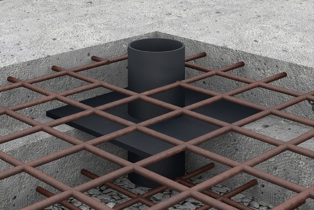 Die Durchführung ist in die Bodenplatte einzubauen.