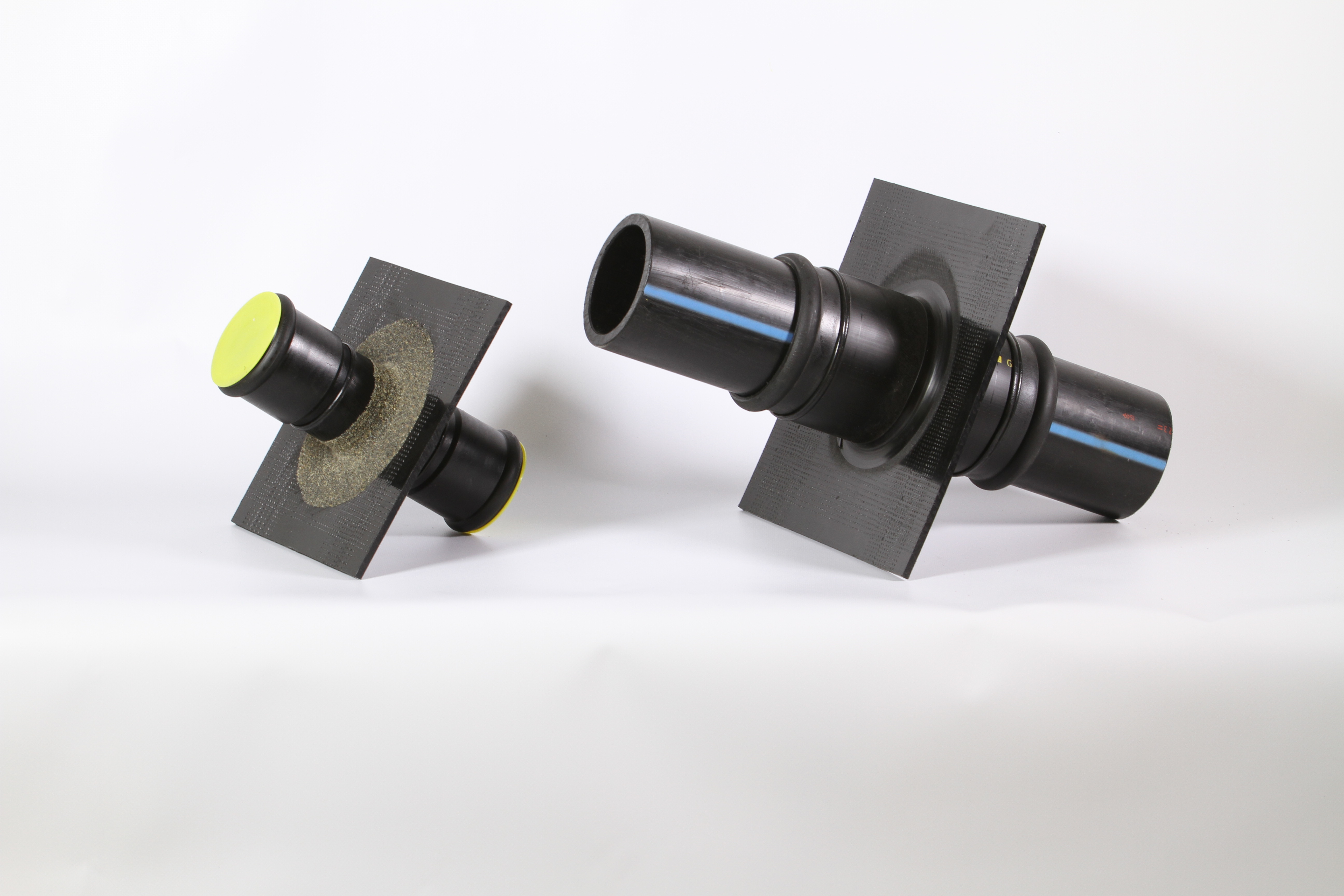Wanddurchführungen mit beidseitig aufgeschweißten Muffen zum Durchführen von diversen PE-Leitungen (Dimensionen DN 50 - DN 315).